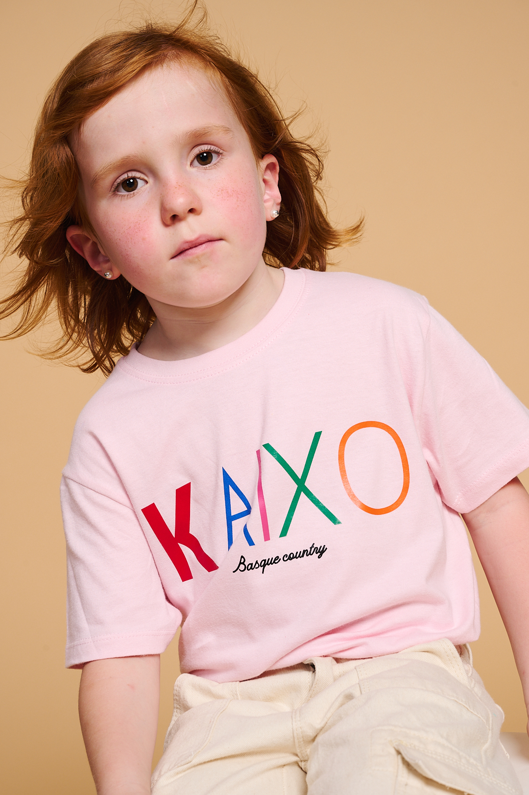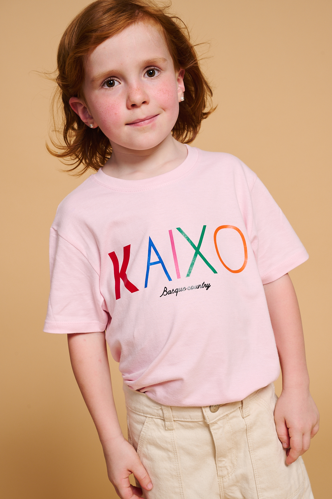 Camiseta kaixo basik: Camiseta infantil en color osa manga corta y escote redondo. Composición de 100% algodón orgánico. En la parte delantera lleva el logo en colores.