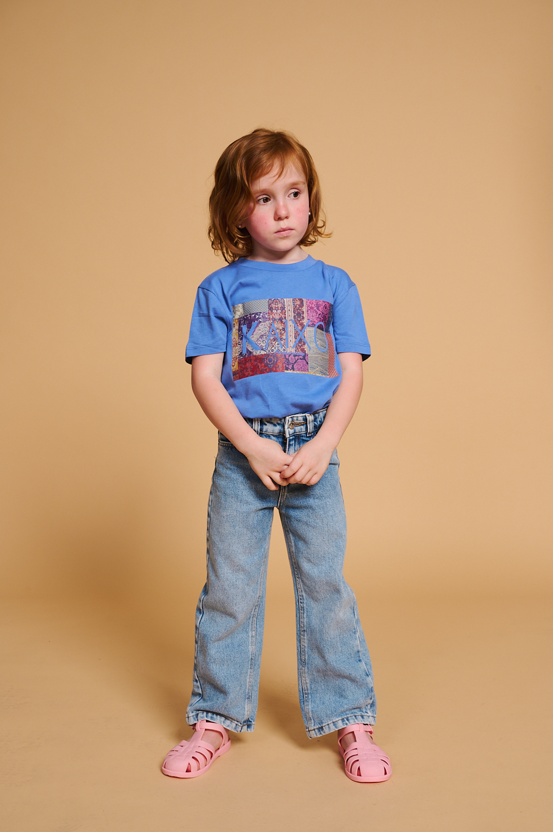 Camiseta vintage unisex: Camiseta unisex infantil de algodón 100% orgánico con escote redondo y manga corta. En la parte frontal lleva un adorno de un tejido estampado de estilo vintage.