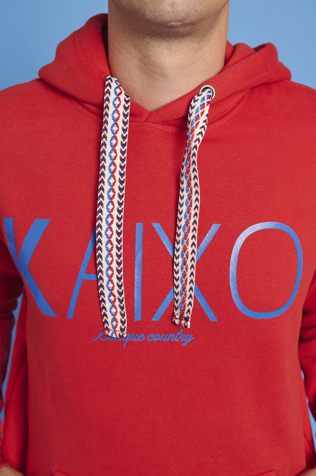 Sudadera unisex de color rojo, es una sudadera oversize de felpa perchada de tacto muy suave y corte recto. Su capucha está forrada y está dotada de un cordón de ajuste, además lleva bolsillo canguro. esta confeccionada en tejido de mezcla de algodón y poliéster. El vinilo del logo va en color azul royal. Una sudadera original que no dejará indiferente a nadie.